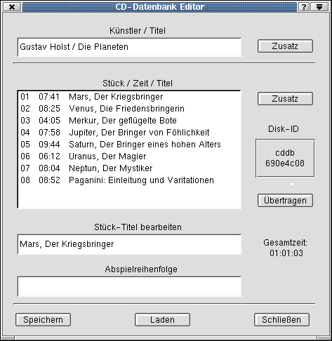 Der CD-Datenbank Editor erlaubt die Veränderung, das Herunterladen, die