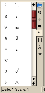 Kile bietet darüberhinaus eine umfangreiche Sammlung von Symbolen zum