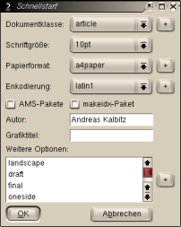 dem man lediglich die Dokumentklasse auswählen kann. Es wird nach der